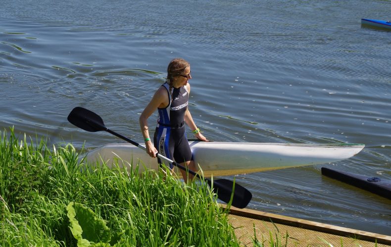 Brigg in Lincolnshire is the usual venue for the opening race of the GBR season. This year it was also a World Cup race, although under the current circumstances no overseas athletes were able to take part. Because the race numbers were expected to be lower than usual, the organisers (Lincsquad) added a triathlon to the quad, which doubled the number of entries. The other changes imposed by the COVID conditions were to reduce the swim distance from 1500m to 800m as many would have had little opportunity for swim training; the bike route (32km) was changed to a single lap but slightly shorter than the 2 laps of recent years; the 7km kayak route was unchanged from last year; and the 10km run route was changed to a single out and back lap, avoiding the town centre.