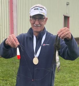 Onto the run, and realised I really had been pushing it on the kayak as I struggled to bring my breathing down. I had around 3 minutes I reckoned on Oli, but knew his running was stronger so just had to zone out and work as hard as I could. I had a few of the Triathletes to use as targets to run down, using this to keep my pace up as much as I could, eventually I could see the finish line on the other side of the lake , so with about 1.5 km left I started to empty the tank! I kept looking back but no sign of anyone, so it ended up a really satisfying victory for me. As it turned out Oli had pulled back a couple of minutes and was only a minute behind me …. it was a great race !